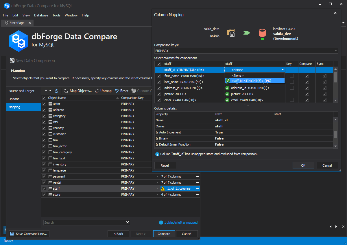 Seize the maximum power to handle changes in your MySQL and MariaDB databases with dbForge Compare Bundle for MySQL. The tool will save you hours of effort comparing and deploying MySQL and MariaDB databases.